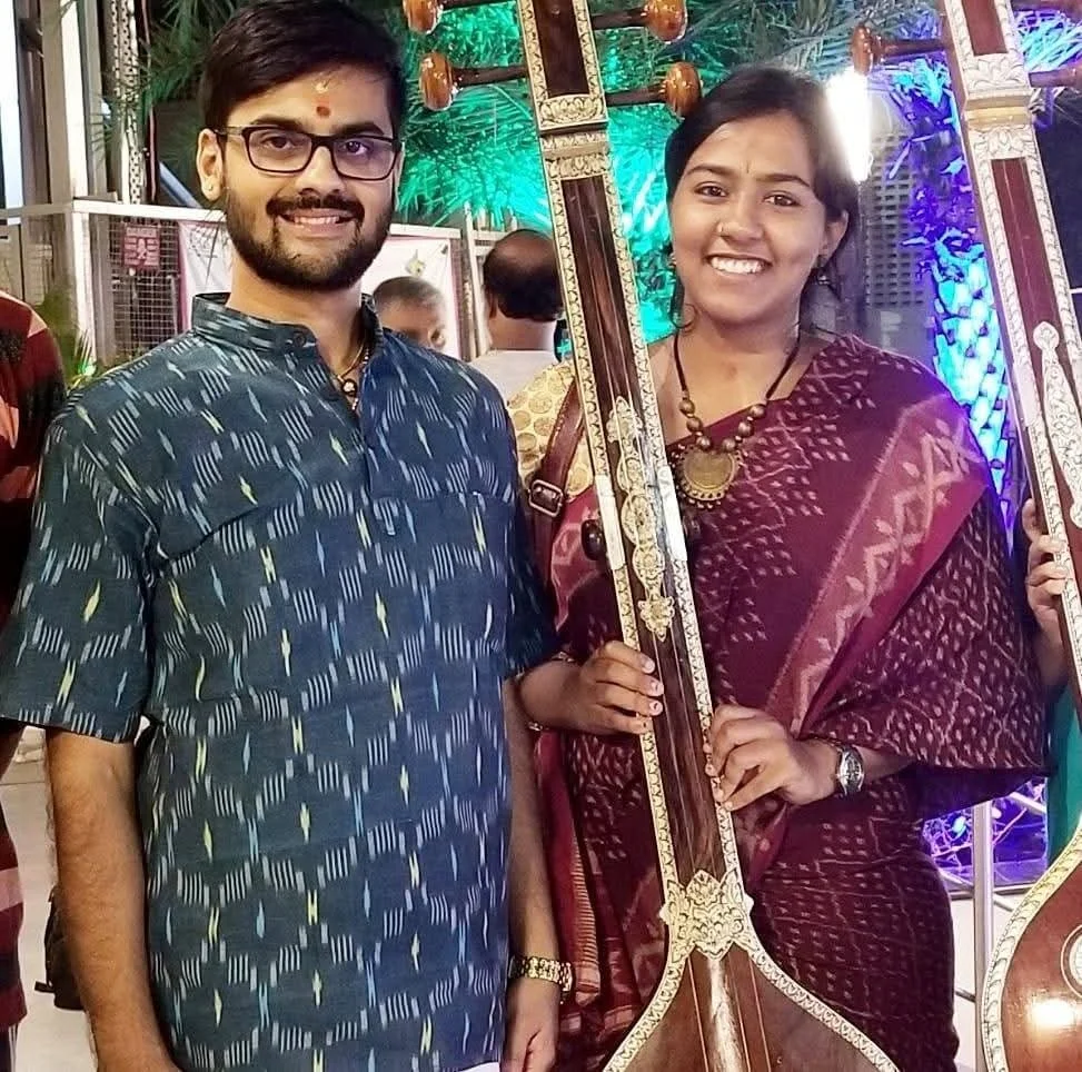 Her father and first guru, Sri. B.S. Sekhar, is a disciple of the late Sri. Vechoor.N Hariharasubramania Iyer and a B Grade artist in AIR.